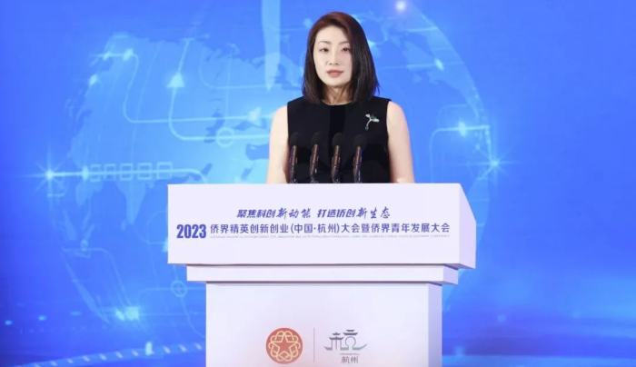 11月1日,“創業中華——2023僑界精英創新創業(浙江·杭州)大會暨僑界青年發展大會”在杭開幕。開幕式上,擁有“海歸”身份的娃哈哈集團總經理、宏勝飲料集團總裁宗馥莉代表僑青企業家做了題為《踏創新之路……