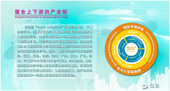 松源機械以市場為導向,致力于食品飲料機械方案的解決,從吹瓶、灌裝、裝箱等方面為客戶提供整線包裝解決方案,并為客戶實現整線交鑰匙工程;松裕印刷以新穎的創意和出彩的效果,致力于食品飲料包裝研發應用一體化方案的解決,為客戶帶來更為綠色和安全的產品包裝解決方案;同時,專注于環保節能型材料的開發,探索數字印刷和智能包裝技術的應用;恒楓食品科技秉承天然、健康的理念,將食品基礎研究跟應用技術相結合、特色食源開發和食品配料研發,致力于中國風味的食品配料方案的解決;進出口公司引進國際化創新管理理念,立足全球,將具有中國文化底蘊的食品飲料品牌推向世界,向世界展示屬于中國的最優秀的食品飲料品牌,向世界傳播中國傳統飲食文化。