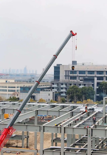 隨著大寒節氣后的雨滴,已經開工2個月的“宏勝超鏈智造”杭州基地經歷地基、主柱后,主車間迎來了鋪設樓承板ing,樓頂工程會在鋪設完樓承板后上澆混凝土,工程進度預計2月底完成,倉庫等其他空間也在持續地建設中。