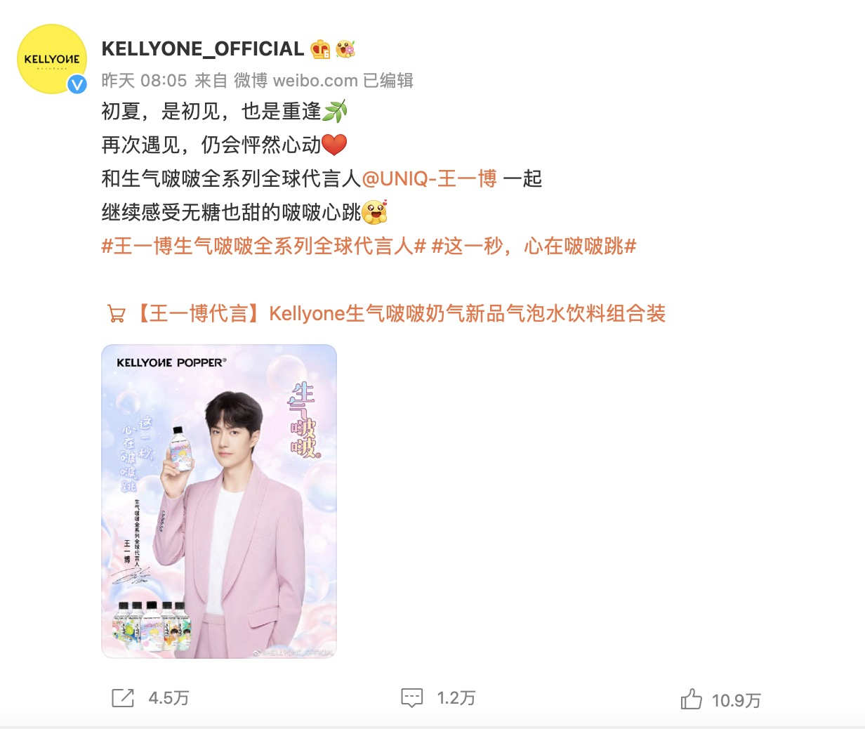 近日,新銳飲料品牌KELLYONE宣布升級王一博為生氣啵啵全系列「全球」代言人,在這個初夏延續“這一秒,心在啵啵跳”的每個甜蜜瞬間。回看近期,KELLYONE動作頻頻,半個月內連推兩款「氣泡系列」新品,前有三度半氣泡酒,后有生氣啵啵奶氣,兩款產品僅一個月內就迅速打開了知名度,受到了不少年輕消費者的喜愛。