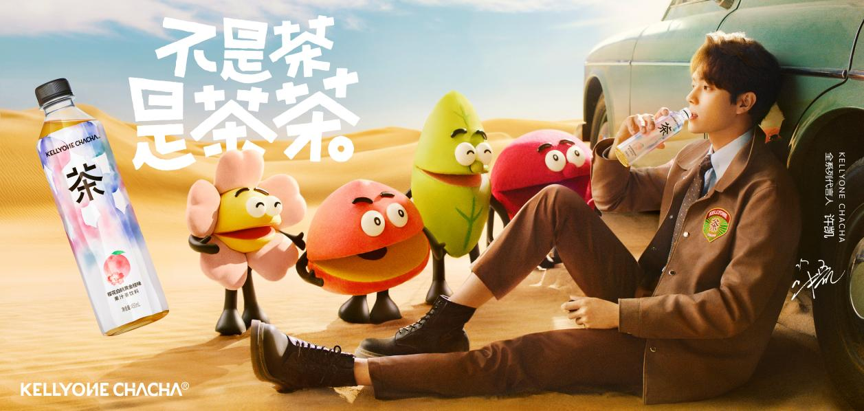 6月6日,新銳飲料品牌KELLYONE正式官宣許凱為KELLYONE CHACHA全系列代言人,并發(fā)布CHACHA X 許凱“調(diào)茶員”TVC。TVC巧妙融入了CHACHA“不是茶,是茶茶”的產(chǎn)品宣傳語,講述了許凱飾演的“調(diào)茶員”,正在展開對(duì)茶葉、白桃、櫻花、楊梅的調(diào)查,以可愛的卡通形象展現(xiàn)了CHACHA中的四種食源,該條TVC以創(chuàng)新的展現(xiàn)形式再掀營銷熱潮。
