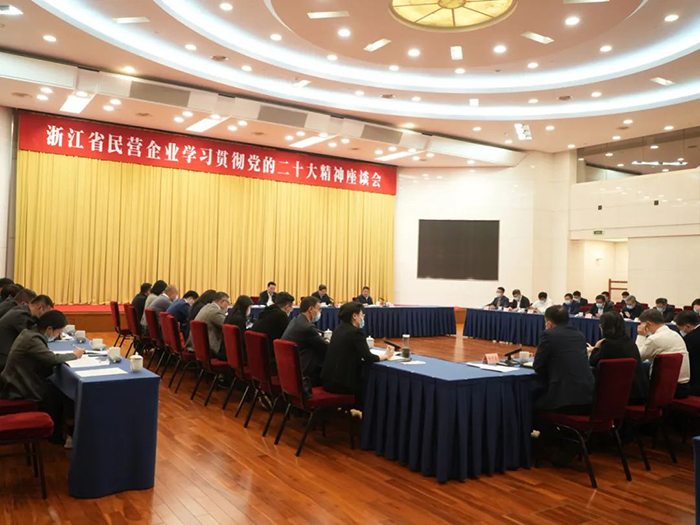 10月26日下午,浙江省民營企業學習貫徹黨的二十大精神座談會在省人民大會堂召開,省委常委、統戰部部長邱啟文,省工商聯主席、省商會會長、富通集團有限公司董事長王健沂,省委統戰部副部長、省工商聯黨組書記徐國龍,省工商聯黨組副書記、副主席蔡曉春,出席本次會議。