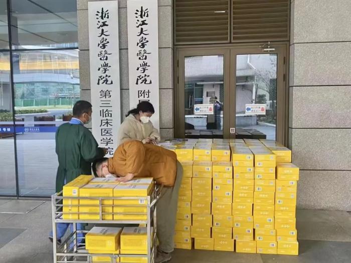 2022年的最后一個工作日,浙江大學醫學院附屬邵逸夫醫院收到了來自浙江馥莉慈善基金會捐贈的1000箱八寶粥。